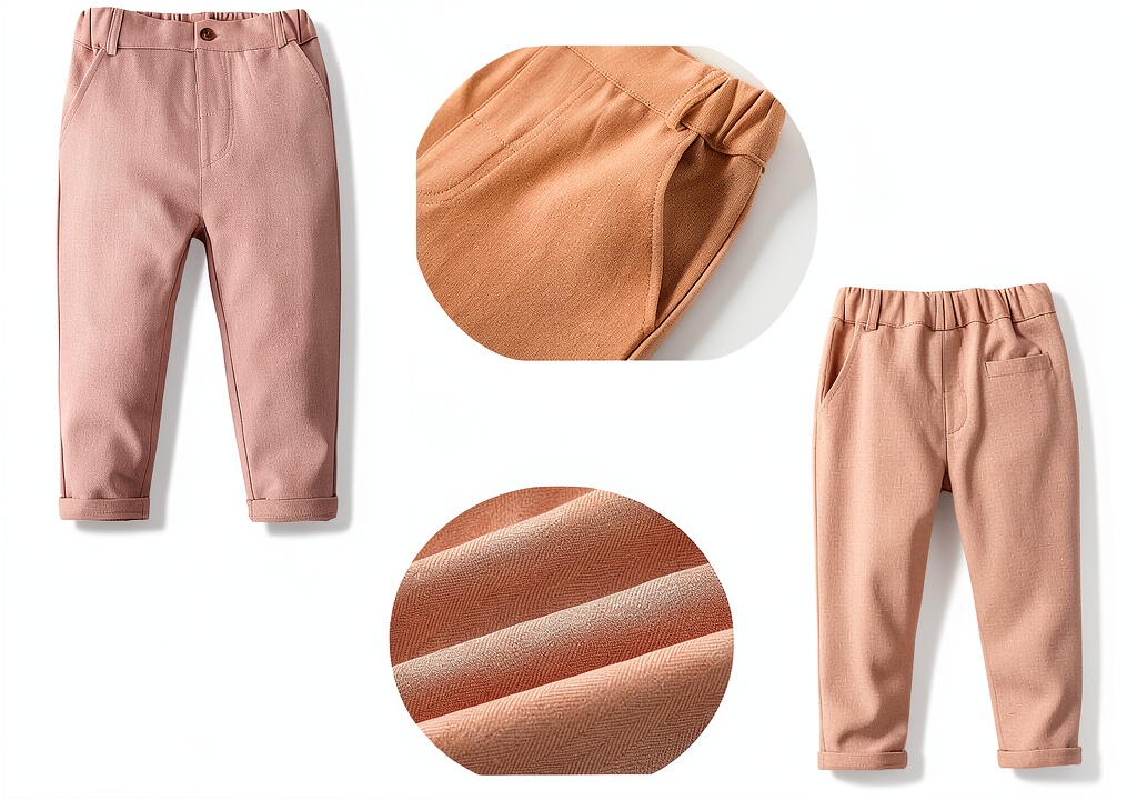 The shirt is made from cotton oxford, while the pants and vest are crafted from a soft brushed cotton blend fabric, ensuring comfort and ease of movement for toddlers.